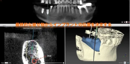 先ほどの最終的な被せ物のイメージとCTを重ね合わせてインプラントの計画をします