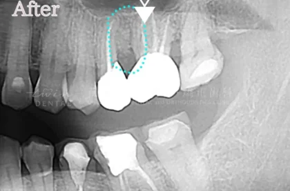 今回はサイナスリフト(上顎の骨量を増やす方法)と再生療法を同時に行い骨再生をして被せ物をセットしました。