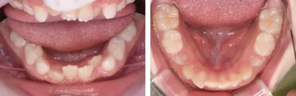 初めはV字型気味で永久歯(大人の歯)が生えるスペースがあまりなくガタガタ(これを叢生ソウセイと言います🎓)でした。