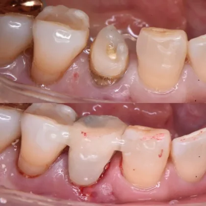 歯茎を切ってないので、縫ってもいません。こうする事により殆ど痛みも腫れもありませんし、😀年末ですが、しっかり噛めるように仮歯を作り一時的に隣の歯と接着剤で固定してるので、お食事もとることが出来ます♪見た目も良いですよね👀