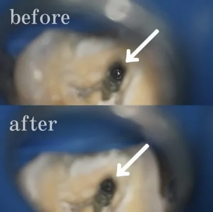 マイクロスコープを使って安全に破折ファイルを除去し、
