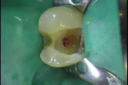 ラバーダム防湿で無菌的な処置、神経が出てきた