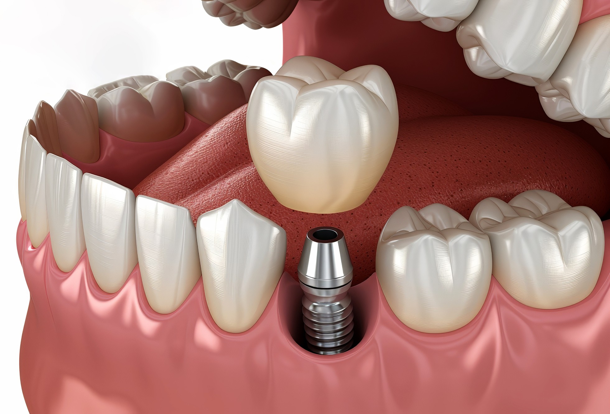 治癒期間が終わったら、インプラントに土台となるアバットメントを装着し、その上に人工の歯(被せ物)を取り付けます。これにより、自然な見た目としっかりとした噛み合わせが実現します。