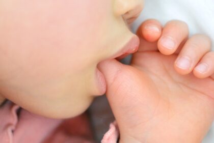 指しゃぶりや爪・唇を噛むクセ、舌で前歯を押すクセは、歯に持続的な力を加えるため歯並びを悪くする要因です。成長期のお子さまではこうした習慣が顎や歯並びの成長に大きく影響します。