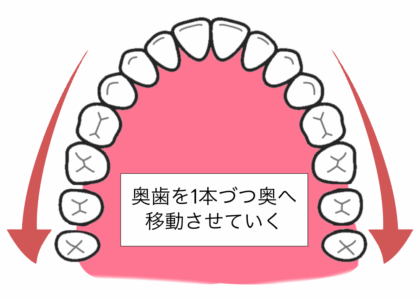 奥歯(臼歯)をさらに奥へ動かすことでスペースを確保する方法です。