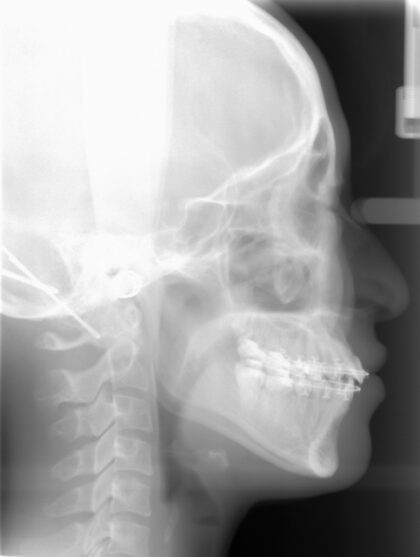 このようなケースでは、上下左右の小臼歯を1本ずつ抜歯し、前歯を奥へ移動させるスペースを作ることが多いです。無理に非抜歯で治療を行うと、前歯がさらに前方に傾き、口元が膨らんでしまうリスクもあります。精密検査で前歯をどの程度後退させる必要があるのかを計測し、適切な治療計画を立てます。
