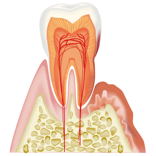歯周病の進行によって抜歯が必要とされるような状態でも、歯周組織を再生することで歯を残せる可能性があります(ただし、症状や状態には個人差があるため、必ずしも回避できるとは限りません)。
